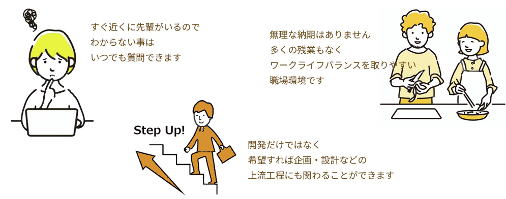 自社製品・サービスの開発から、受託案件開発まで、様々な仕事があり幅広い経験を積むことができます。